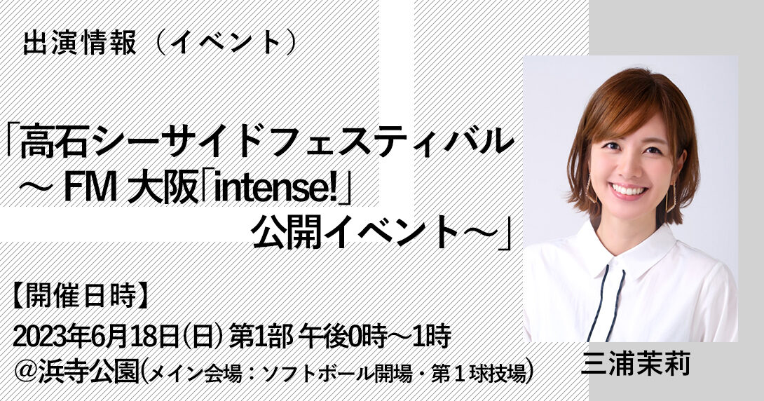 高石シーサイドフェスティバル~FM大阪「intense!」公開イベント~に三浦茉莉が出演致します。