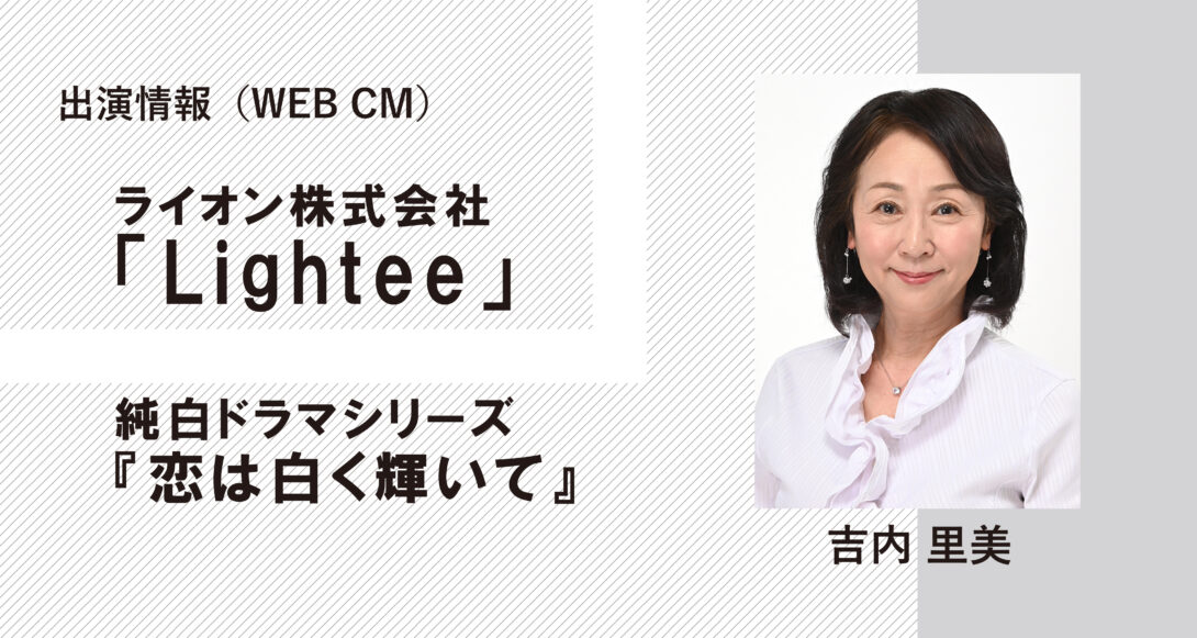 ライオン株式会社「Lightee」webドラマ『純白ドラマシリーズ 恋は白く輝いて』 吉内里美が社長役で出演中です! 是非ご覧ください!