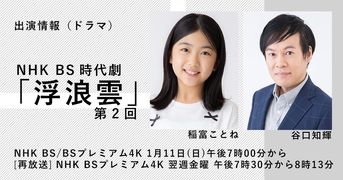 NHK BS時代劇「浮浪雲」第2回に、稲富ことね、谷口知輝が出演します。