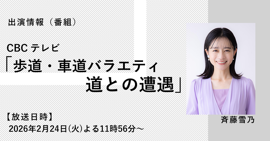 CBCテレビ「歩道・車道バラエティ 道との遭遇」に斉藤雪乃が出演いたします。