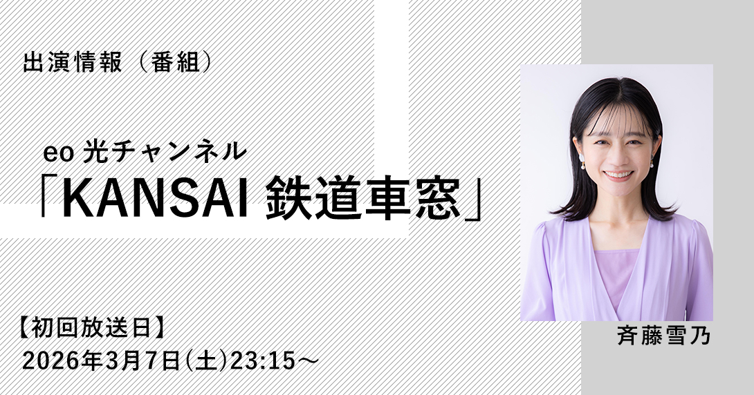eo光チャンネルにて特別番組「KANSAI鉄道車窓」の放送が決定! 番組MCとして斉藤雪乃が出演いたします。