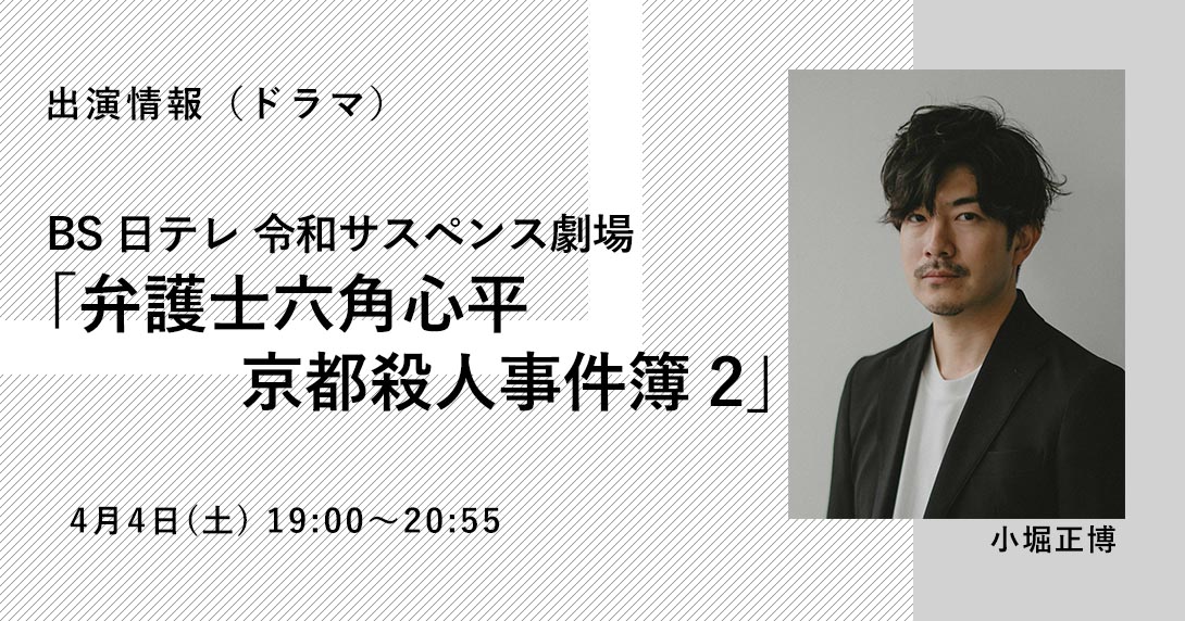 BS日テレ 令和サスペンス劇場「弁護士六角心平 京都殺人事件簿2」に小堀正博が出演いたします。