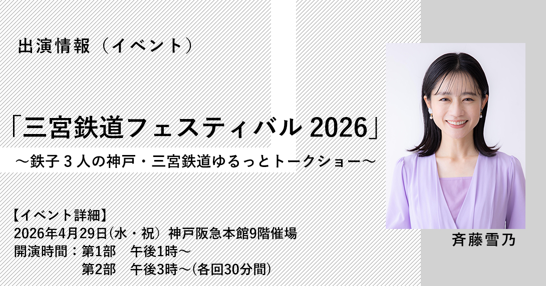 小倉沙耶さん、桜井ういよさん、斉藤雪乃の鉄子3両編成が神戸・三宮を走る鉄道の魅力をお話しします。